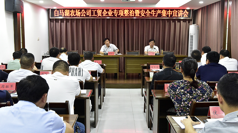 為深入學(xué)習(xí)貫徹習(xí)近平關(guān)于安全生產(chǎn)的重要思想和黨中央、國務(wù)院決策部署,認(rèn)真落實省、集團公司和地方政府相關(guān)要求,扎實推進(jìn)安全生產(chǎn)專項整治,保證實現(xiàn)安全生產(chǎn)專項整治重點領(lǐng)域宣傳教育“全覆蓋”,8月27日上午,白馬湖農(nóng)場公司召開工貿(mào)企業(yè)專項整治專題部署暨安全生產(chǎn)集中宣講會,由黨委書記姚春華作安全生產(chǎn)專題宣講,并邀請淮安區(qū)應(yīng)急管理局副局長陳華昌作安全生產(chǎn)專項整治專題部署。