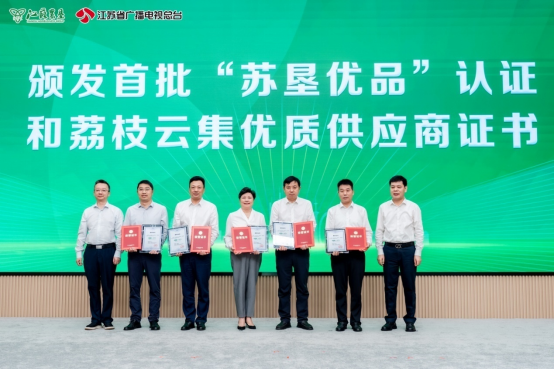 現(xiàn)場還舉行了“蘇墾優(yōu)品”認證證書及“荔枝云集優(yōu)質供應商”證書頒發(fā)儀式。江蘇省農墾米業(yè)集團有限公司、蘇州蘇墾現(xiàn)代農業(yè)發(fā)展有限公司、金太陽糧油股份有限公司、江蘇農墾漁業(yè)科技有限公司、江蘇農墾乳業(yè)科技有限公司五家企業(yè)獲得首批授權。
